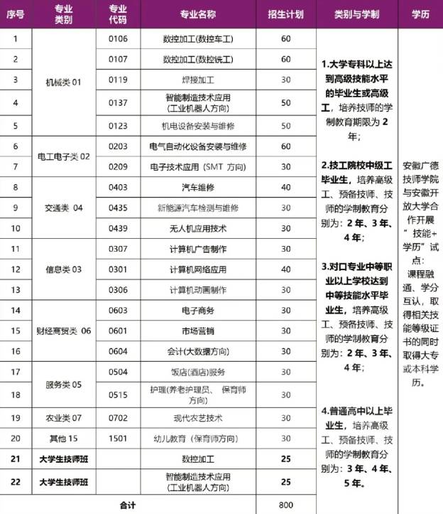 安徽广德技师学院是一所公办技师学院。学院一、二期建设共占地374亩,总建筑面积近14万平方米。技工(含高级技工、预备技师近千人)共开设八大类19个专业。学院现有在籍技工学生总数3000人(高级技工、预备技师近千人),教职工总数310人(双师型教师156人,正高级教师1人,高级职称80人,省市县骨干教师、学科带头人、教坛新星等72人,省特级教师1人,省技术能手2人,省市授予工匠教师5人)。